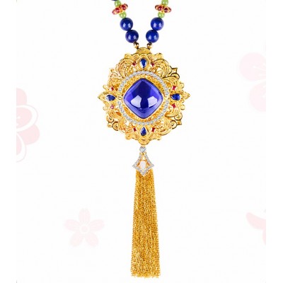 BOJEM/(宝姐)珠宝  【朝阳】5A级坦桑石花丝镶嵌项链(预定)