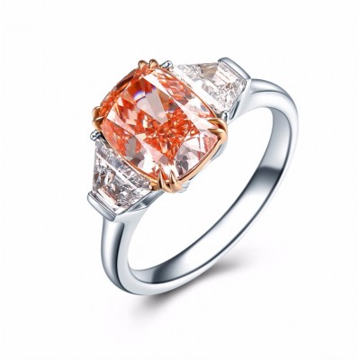 GIA证书 ZOCAI/佐卡伊3克拉枕形橘色钻戒奢华异形钻 定制