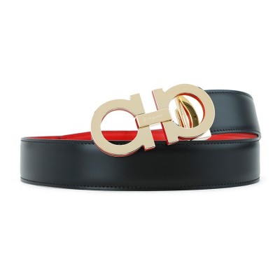 Salvatore Ferragamo/菲拉格慕 黑色/红色 男士金属GANCINI扣饰双面可调式腰带 728126-67A193-DOUBLE ADJUS 2020年春夏