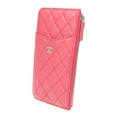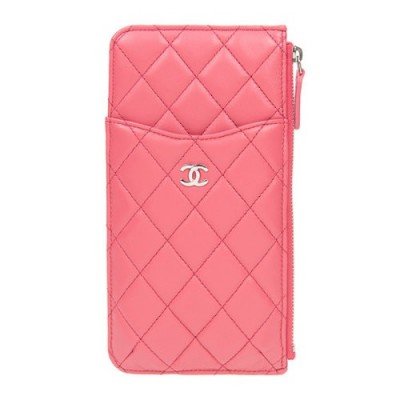CHANEL/香奈儿 女士牛皮鱼子酱金属LOGO菱形长款拉链女士手拿包