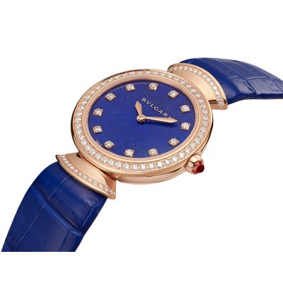 BVLGARI/宝格丽 DIVAS'DREAM系列镶钻款 18K金玫瑰金表壳青金石表盘蓝色鳄鱼皮表带 30毫米